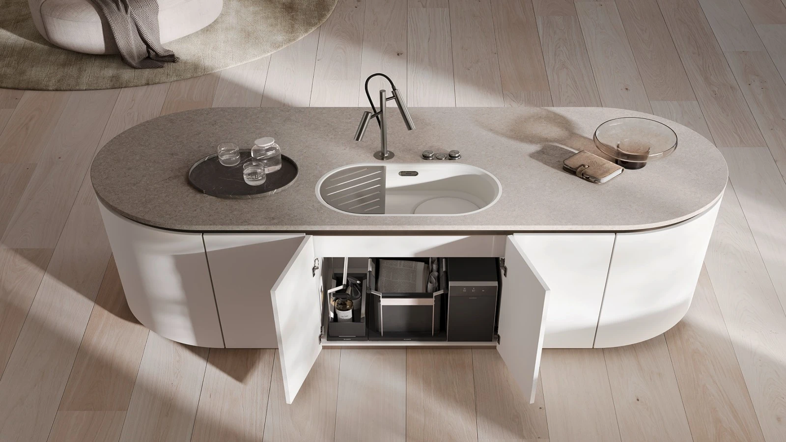 Drez BLANCO OOVALON sa výrazne odlišuje od klasických hranatých riešení. Jeho jemný oválny tvar v kombinácii s presne definovanými líniami pôsobí pokojne, nadčasovo a mimoriadne elegantne. Nejde len o drez, ale o dizajnový objekt, ktorý prirodzene zapadá do moderných otvorených kuchýň.