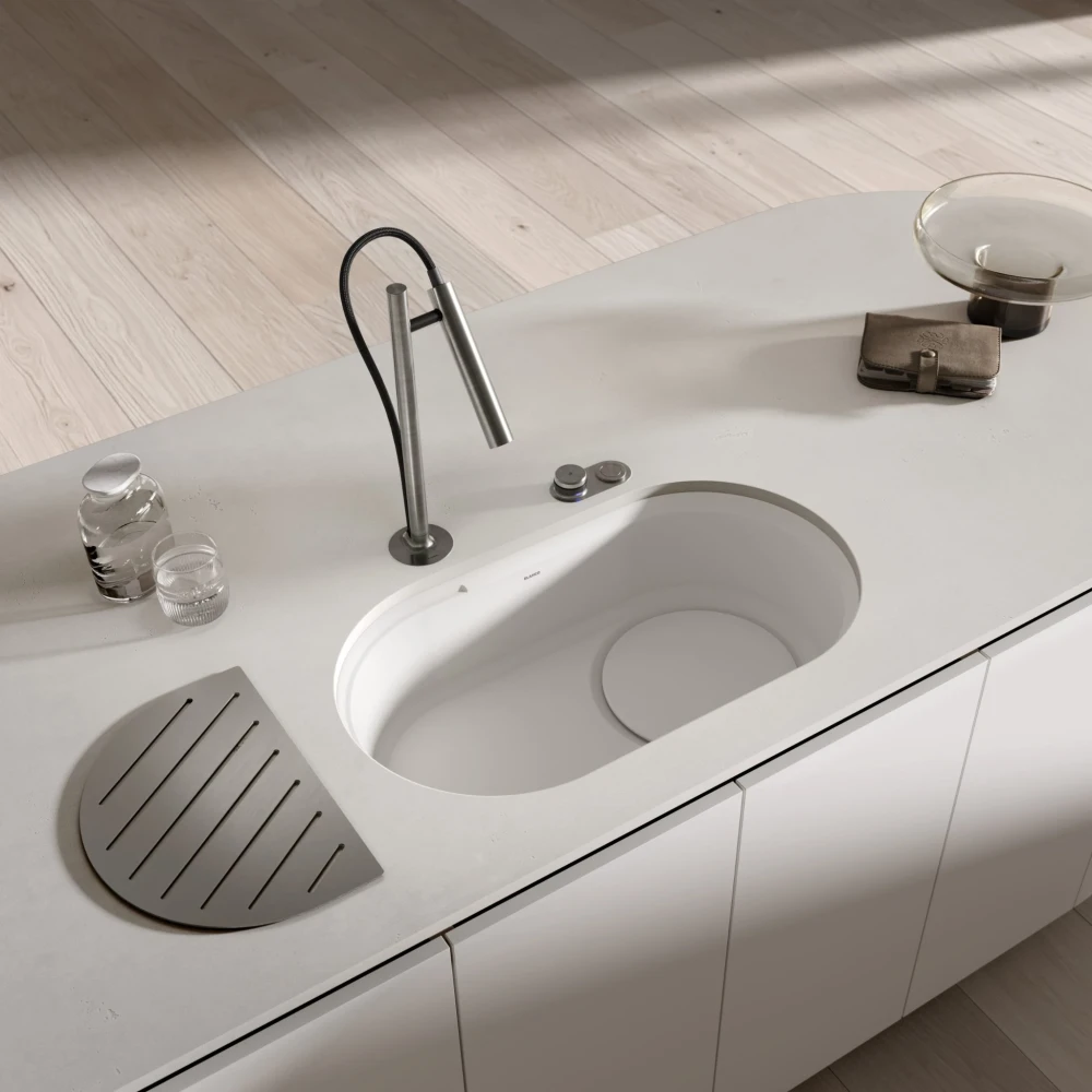 Sada komponentov BLANCO OOVALON je navrhnutá ako funkčné a dizajnovo jednotné doplnenie drezov BLANCO OOVALON v rámci systémového konceptu BLANCO UNIT. Jednotlivé prvky sú tvarovo aj vizuálne zosúladené tak, aby vytvárali kompaktné, ergonomické a esteticky vyvážené kuchynské pracovisko.
