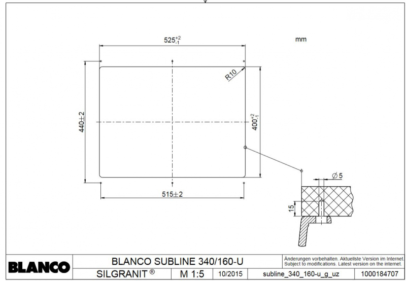 - Blanco SUBLINE 340/160-U sivá vulkán ĽAVÝ -pod prac.dosku
