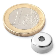 Kruhový neodymový magnet s deklarovanou prídržnou silou cca 2,4 kg je spoľahlivé riešenie pre nábytkové aplikácie, kde je potrebné pevnejšie magnetické zatváranie. Magnet je osadený v oceľovom puzdre a vybavený otvorom s priehlbňou pre skrutku M3, čo umožňuje pevné a presné uchytenie do korpusu skrinky alebo dvierok.
