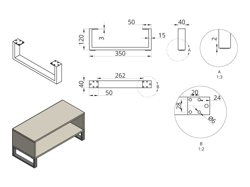 - Nohy na stôl pre komodu a stolík