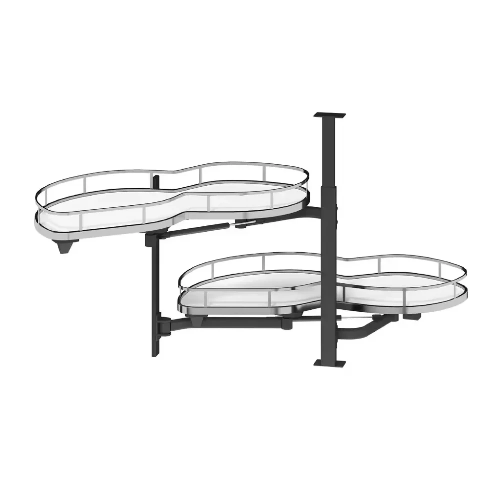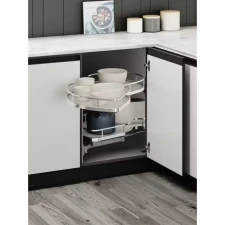 Exkluzívna rohová výsuvná polica zo série ELEGANCE je kombináciou špičkového dizajnu a funkčnosti. Vďaka premyslenému mechanizmu sa pri otvorení dvierok police vysúvajú do priestoru a sprístupnia celý obsah skrinky. Tlmené dovieranie zaručuje tichý a plynulý pohyb. Elegantné koše v chróme s protišmykovým dnom držia uložené predmety pevne na svojom mieste. Ideálne pre korpusy so šírkou 900 mm.