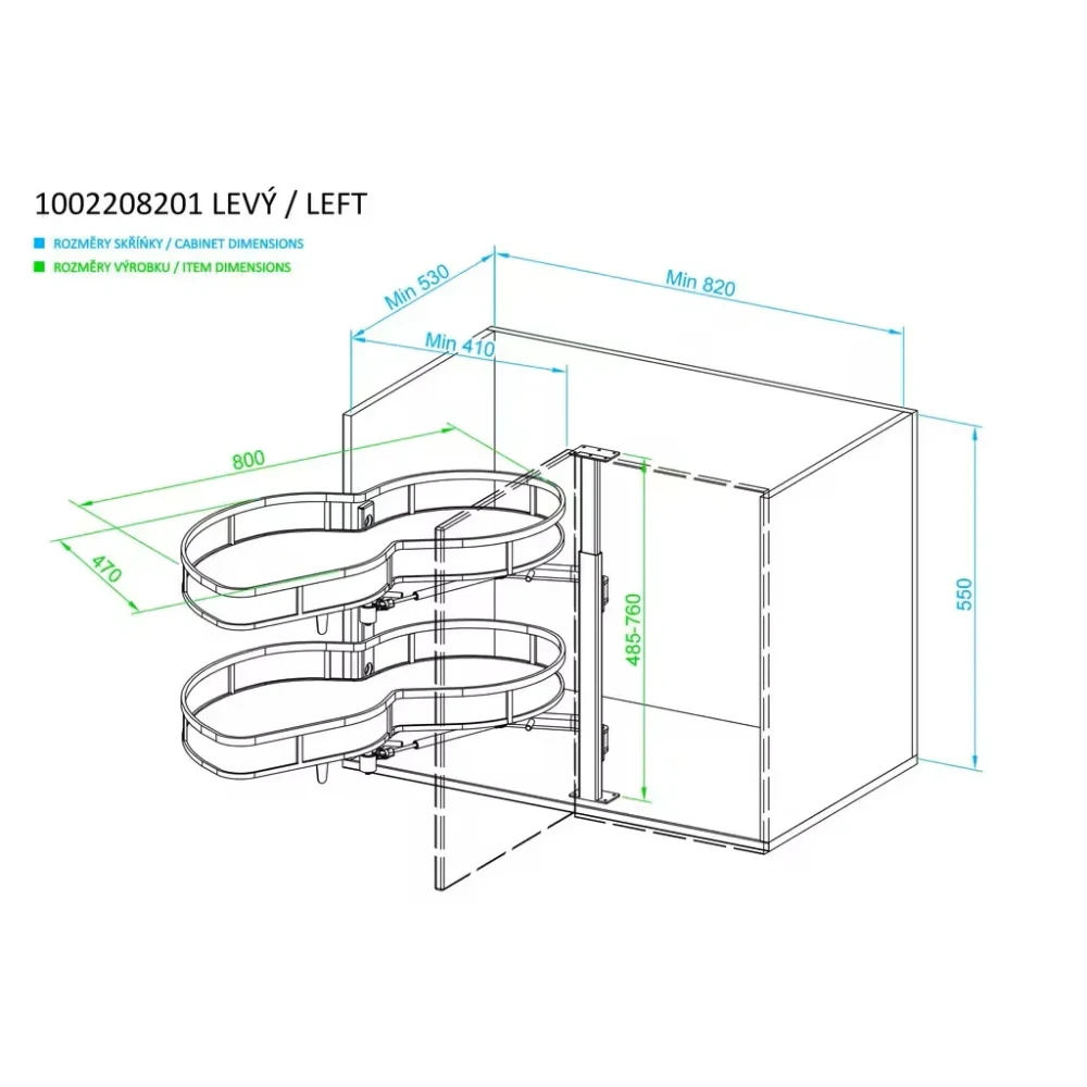 Rozmer výrobku (Š x H x V): 800 x 470 x 485-760mm