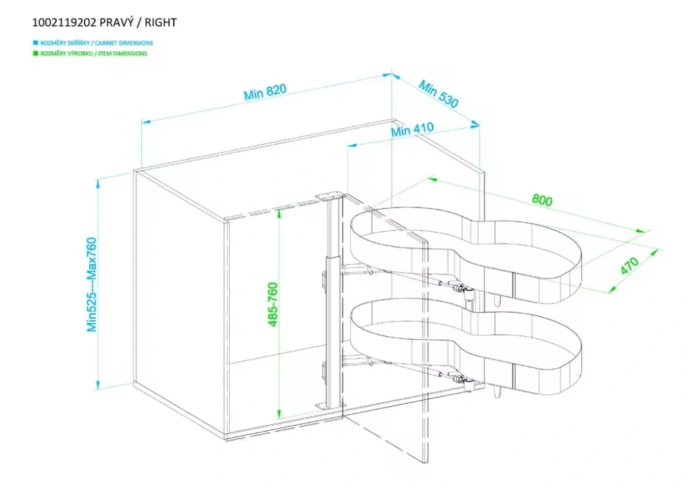Elegantné a praktické riešenie pre rohové kuchynské skrinky s maximálnym využitím priestoru. Výsuvné police sa vysúvajú do priestoru, čím zabezpečia ľahký prístup k uloženým veciam. Kvalitné tlmiče zabezpečujú tiché a plynulé dovieranie, zatiaľ čo protišmykový povrch uchová uložené predmety bezpečne na svojom mieste.