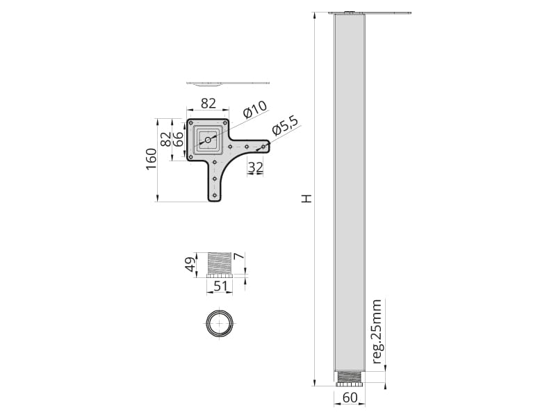 Stabilná hranatá noha na stôl s reguláciou výšky. Stolovú nohu môžete použiť na jedálenský, kuchynský alebo pracovný stôl.