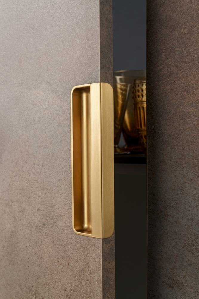 Elegantná úchytka Viefe MOULE štýlovo obopína nábytok a kryje horné časti zásuviek a skriniek. Jej krycia časť a precízne zapustenie zaisťujú dokonalé lícovanie a integráciu. Ponúka dobrý úchop a premieňa nábytok na výrazné dekoratívne prvky. Dostupná v titánovej čiernej, brúsenej mosadzi, matnej bielej a matnej čiernej farbe, s možnosťou horizontálnej alebo vertikálnej inštalácie.