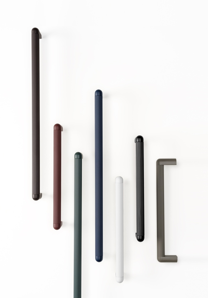 Hliníková úchytka RISS je charakteristická a vhodná pre rôzne interiérové projekty. Ponúka sedem farieb (matná biela, matná čierna, machovo sivá, lesná zelená, mokka hnedá, vulkanická červená a polnočná modrá), čo zaručuje jej všestrannosť a integráciu. Lakovaný povrch je príjemný na dotyk a poskytuje dobrý úchop. Kombinácia rôznych veľkostí umožňuje dekoratívne variácie. Oba modely RISS získali ocenenie Best of Products 2024 od The Architect's Newspaper za dekoratívne kovania.