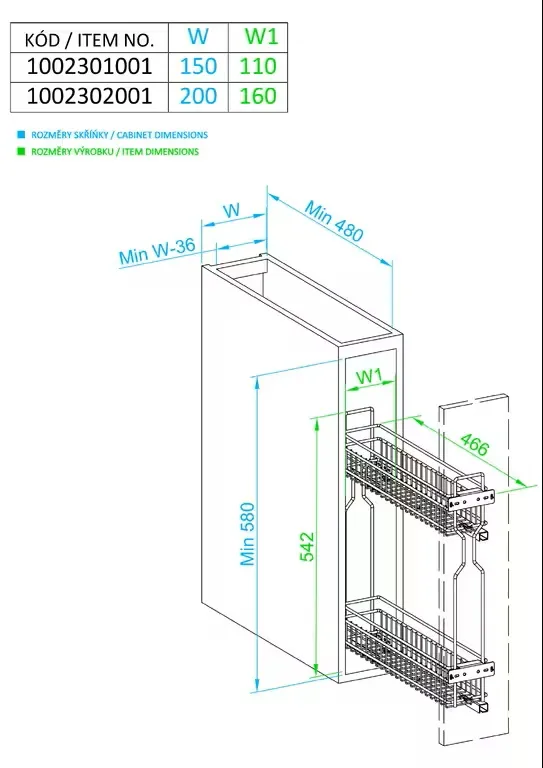 Bočný plnovýsuvný dvojkoš zo série KOMFORT je navrhnutý pre úzke skrinky so šírkou 150 mm. Umožňuje efektívne usporiadanie kuchynských potrieb, fliaš alebo čistiacich prostriedkov s jednoduchým prístupom pri plnom vysunutí.Vďaka chrómovanému drôtenému vyhotoveniu pôsobí ľahko a elegantne, pričom kvalitný plnovýsuv s tlmeným dovieraním zabezpečuje tichý a plynulý chod.