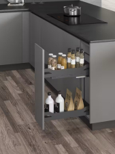 Plnovýsuvný dvojkoš do skrinky so šírkou korpusu 200mm je ideálnym riešením pre úzke kuchynské priestory. Vďaka plnovýsuvu a tlmenému dovieraniu ponúka pohodlný, tichý a plynulý chod. Protišmykový povrch dna zaručí, že uložené predmety zostanú na svojom mieste.
